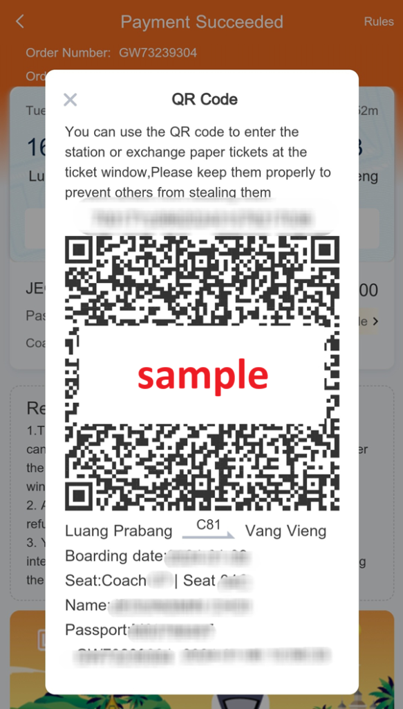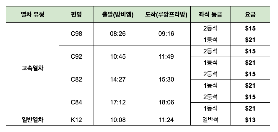 • [QR/기차티켓] 방비엥→루앙프라방