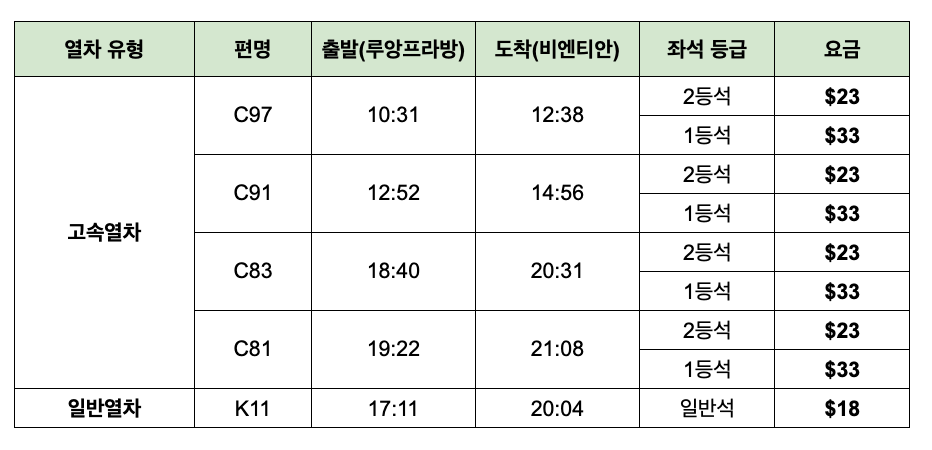 • [QR/기차티켓] 루앙프라방→비엔티안