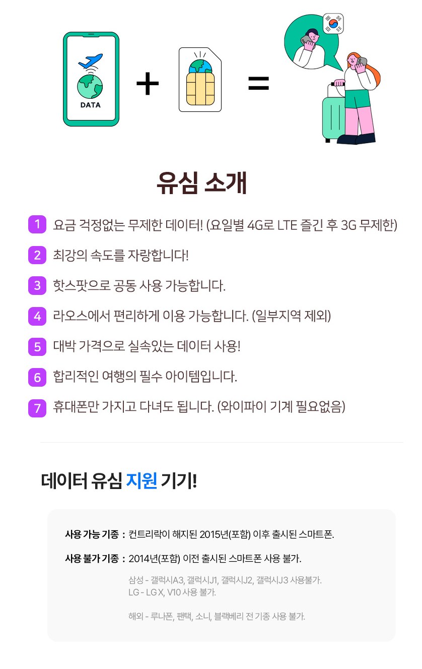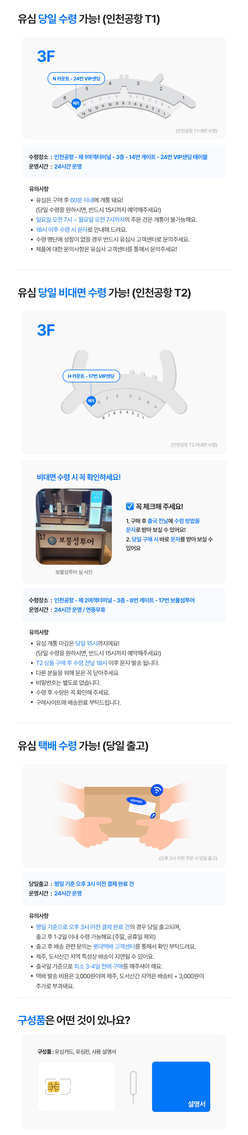uSIM은 출발일 기준 최소 7일전 주문 해주셔야 원활하게 수령 가능합니다.