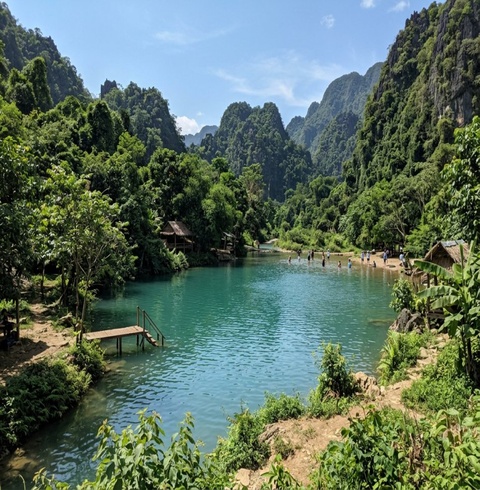 방비엥 시내에서 가장 가까운 거리에 있는 블루라군 1번이에요. 첫 번째 라오스 여행이라면 대부분 이곳을 먼저 찾게 되죠.