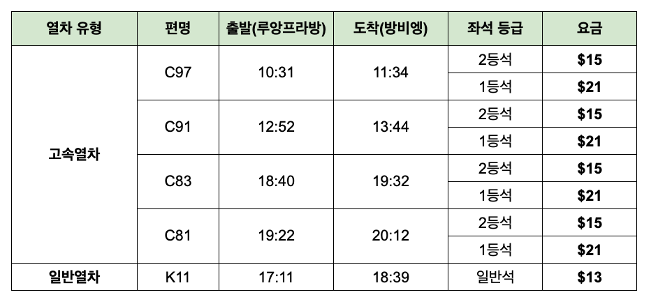 - 기차티켓 구입 후 여권 정보와 구입시 사용된 아이디/비번은 폐기됩니다. 다만, 기차 회사 시스템에 등록된 여권정보는 6개월 동안 남아 있으며 동일 여권 정보로 추가 아이디를 만들수 없습니다. 편도 티켓을 라오스플레이에 구입 대행 후 복귀편을 직접 구입 하실수 없습니다. 이점 유의 하시기 바랍니다.