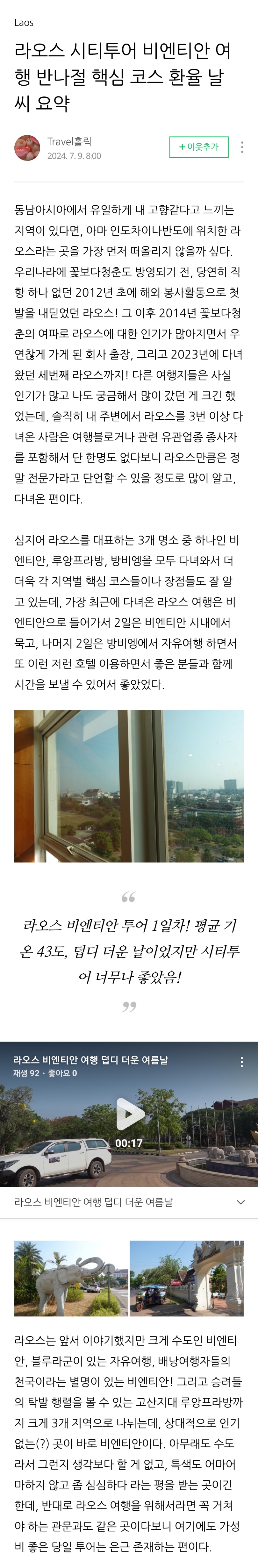 라오스 시티투어 비엔티안 여행 반나절 핵심코스 환율 날씨 요약