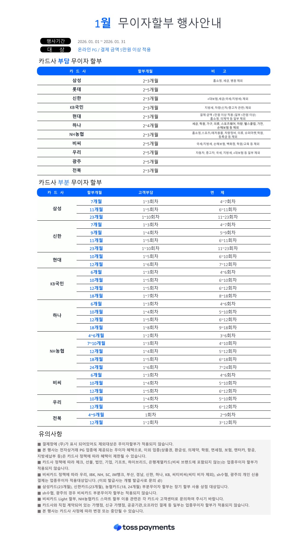 1월 카드 무이자 행사 안내